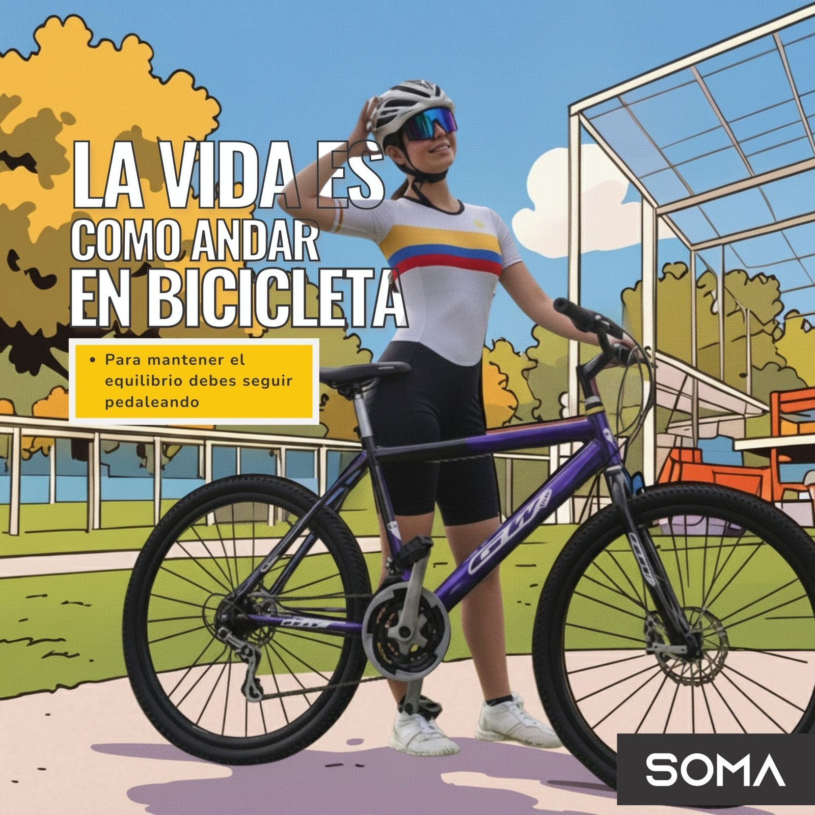 Soma es una marca colombiana que nació en el SENA. Su enfoque está en la creación de ropa deportiva para niños y adolescentes, tanto en el ámbito profesional como semiprofesional, especialmente en disciplinas como ciclismo y patinaje.